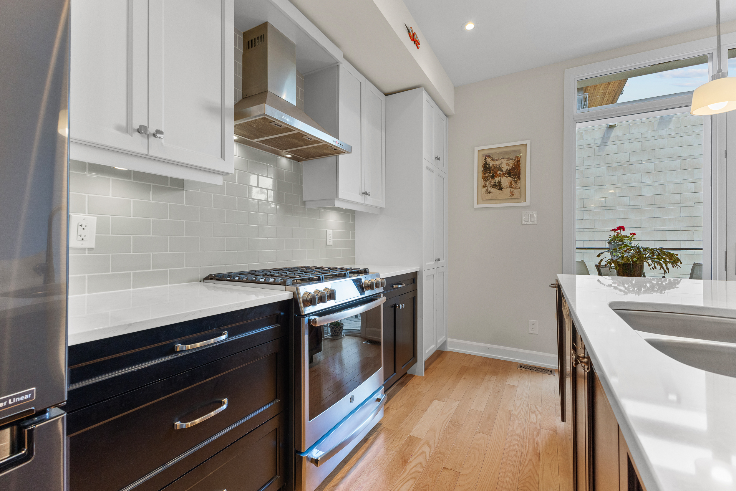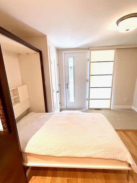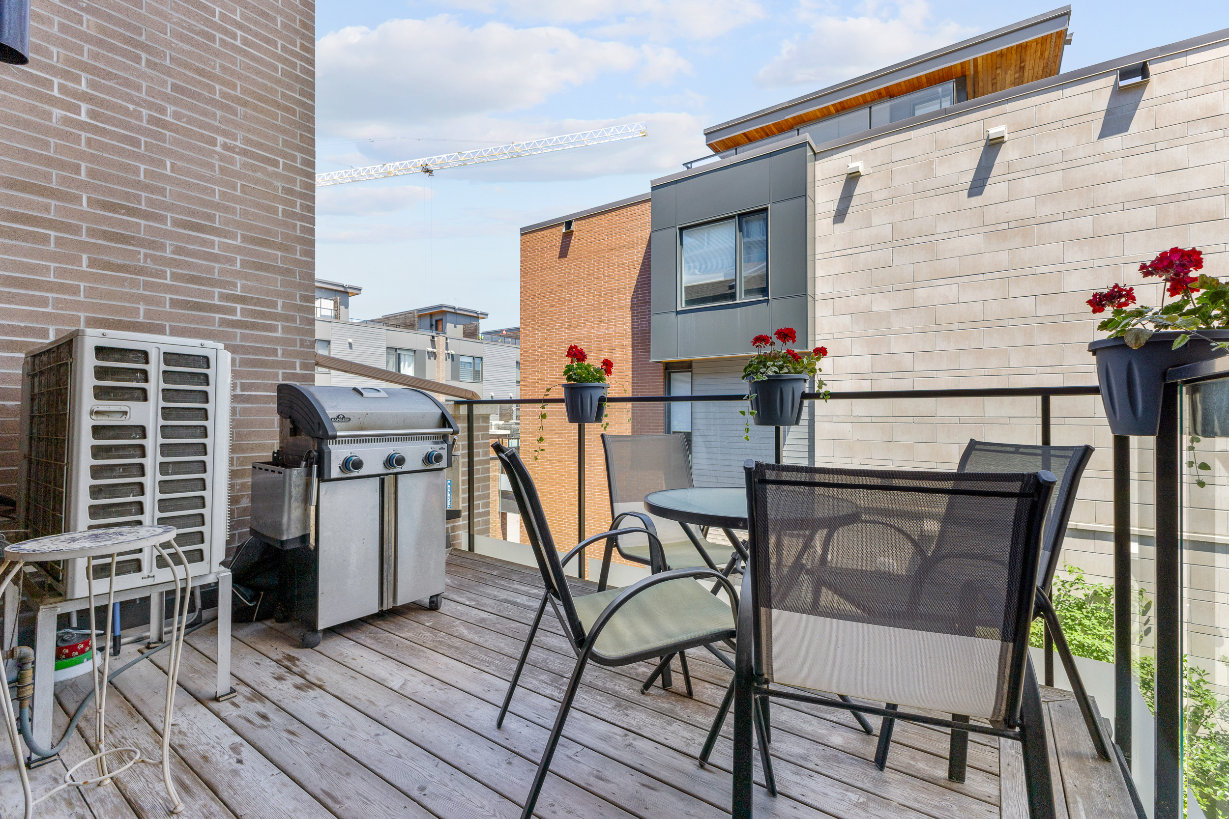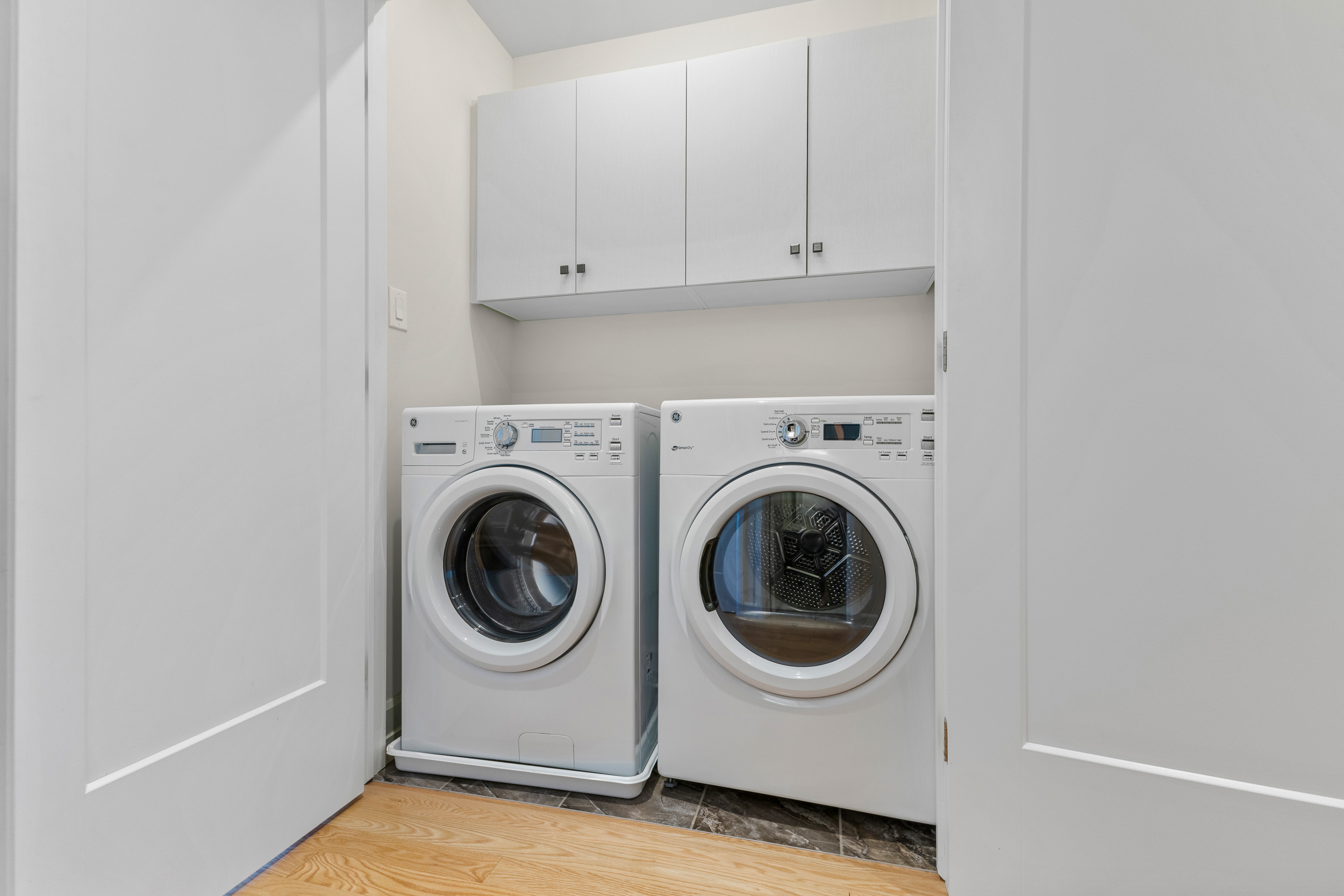 Store coats and gear in the large closet by the garage entrance and relax in the brightly lit den on the main level. With a powder room close by, the den can purpose as a sleeping area, complete with a murphy bed. Ascend to the second level and you’re met with an airy and open kitchen, dining and living room space. The kitchen is outfitted with modern lighting, stainless steel appliances, granite counters and an island eat-in bar. Walk out from the kitchen and enjoy your morning coffee on the sunny back deck, equipped with a gas BBQ. The open living and dining room create a natural space to entertain. On the third level, you’ll find a bright bedroom, sparkling full bathroom, convenient laundry cabinet and a grand primary bedroom with sweeping windows and three piece ensuite.