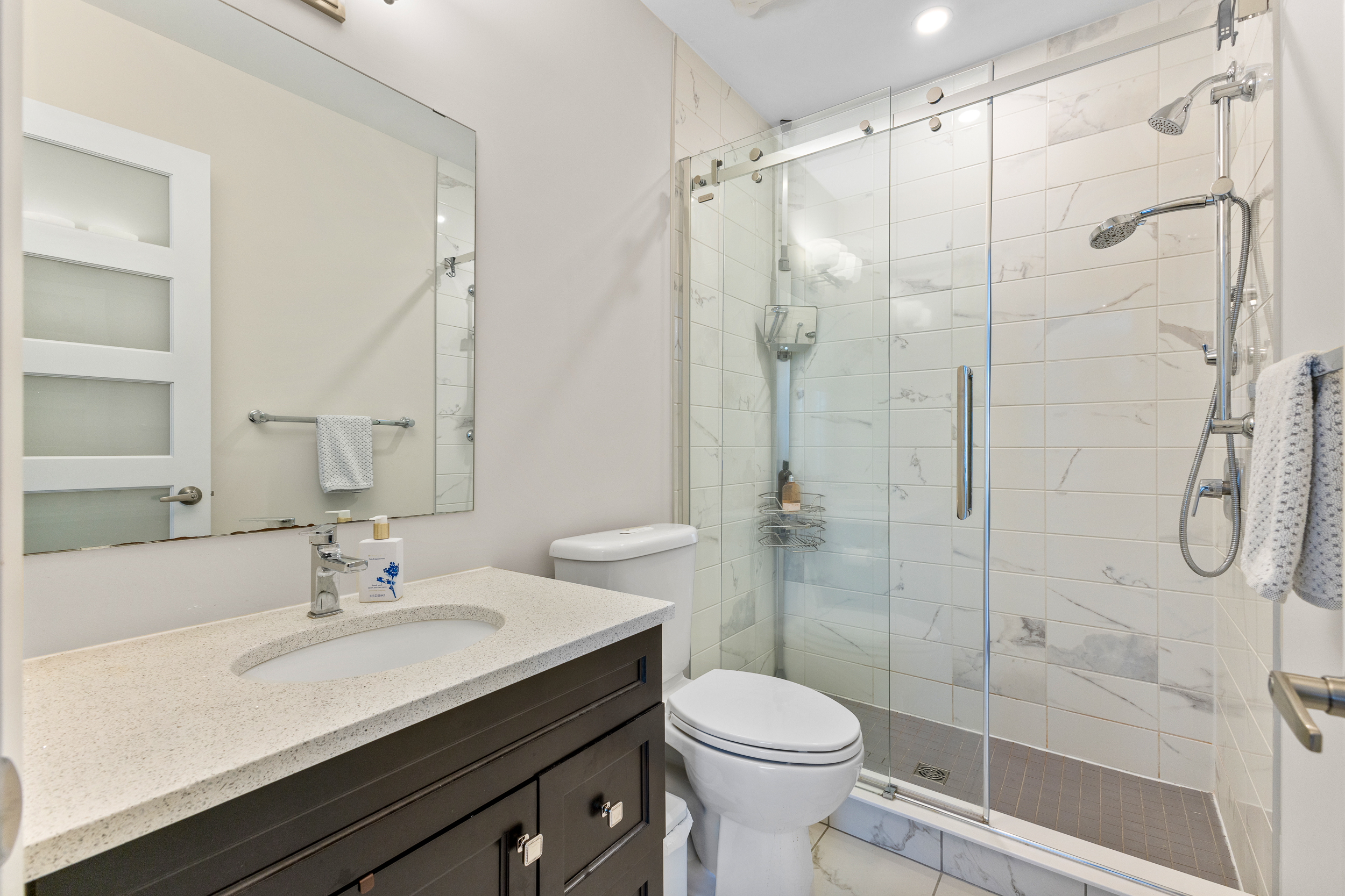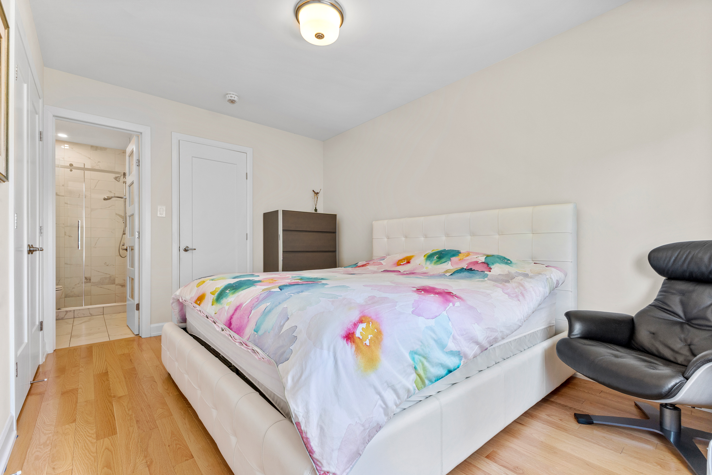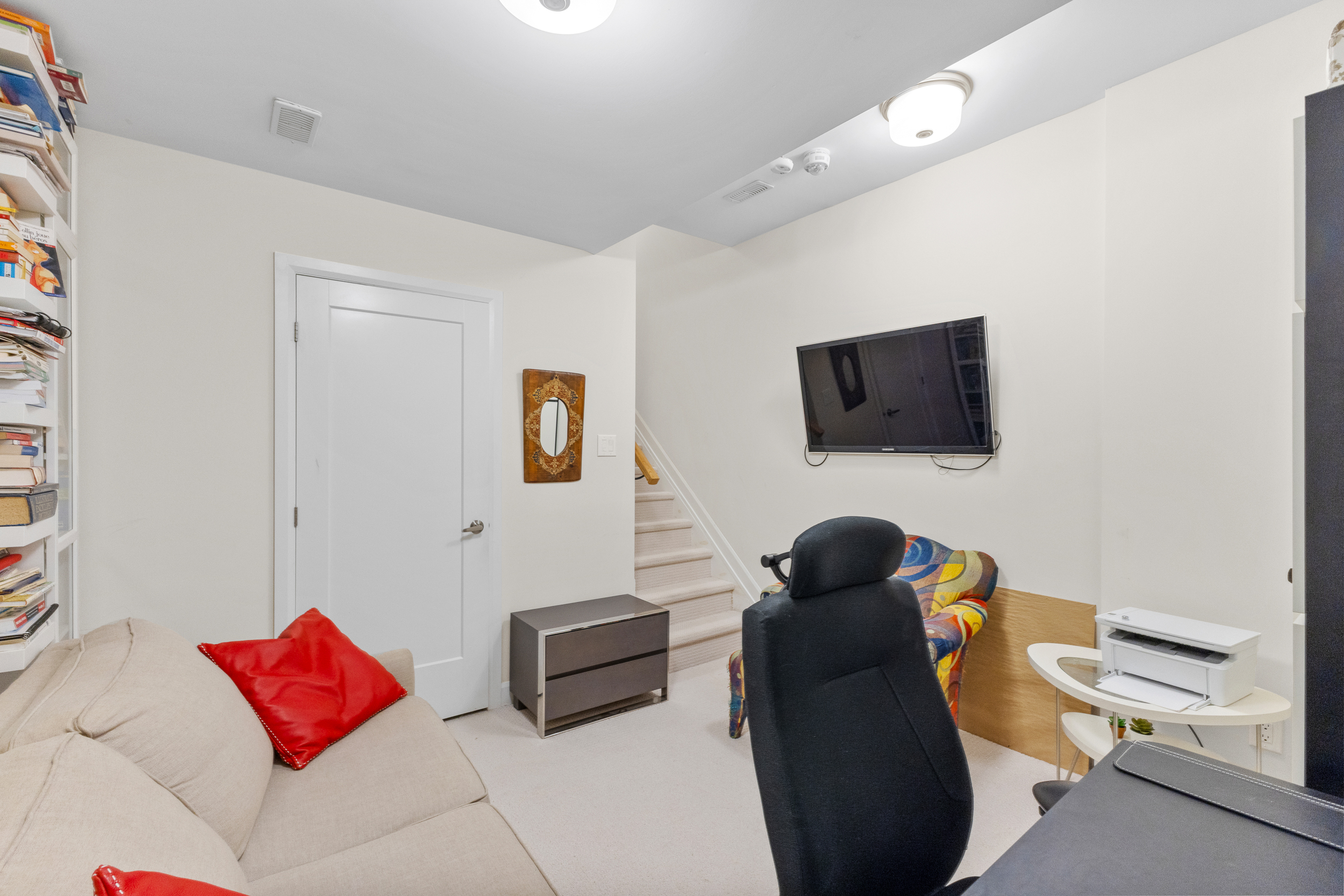 Store coats and gear in the large closet by the garage entrance and relax in the brightly lit den on the main level. With a powder room close by, the den can purpose as a sleeping area, complete with a murphy bed. Ascend to the second level and you’re met with an airy and open kitchen, dining and living room space. The kitchen is outfitted with modern lighting, stainless steel appliances, granite counters and an island eat-in bar. Walk out from the kitchen and enjoy your morning coffee on the sunny back deck, equipped with a gas BBQ. The open living and dining room create a natural space to entertain. On the third level, you’ll find a bright bedroom, sparkling full bathroom, convenient laundry cabinet and a grand primary bedroom with sweeping windows and three piece ensuite.